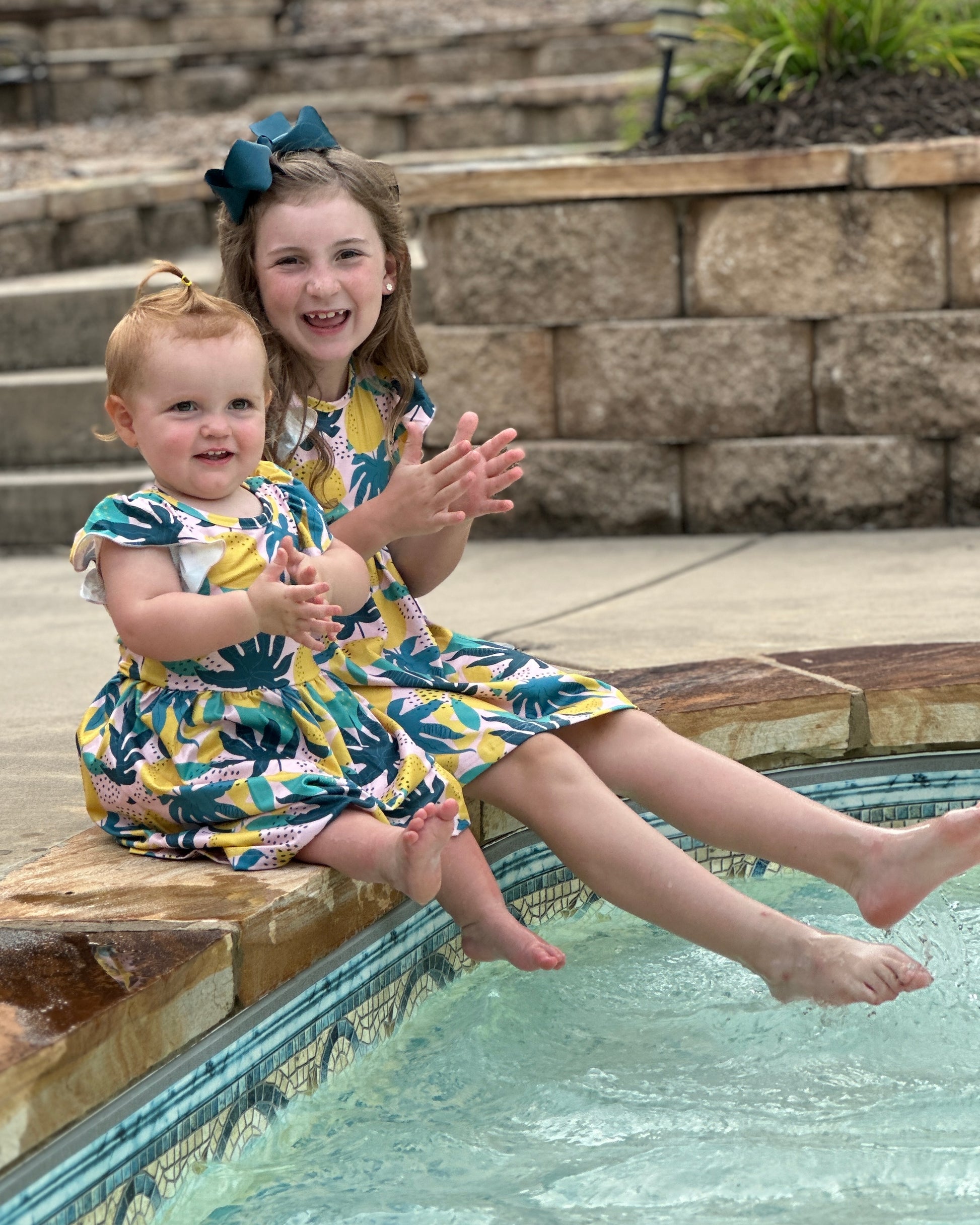 Girls' Tropical Lemon Flutter Sleeve Dress