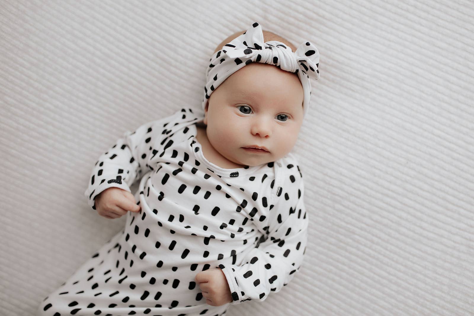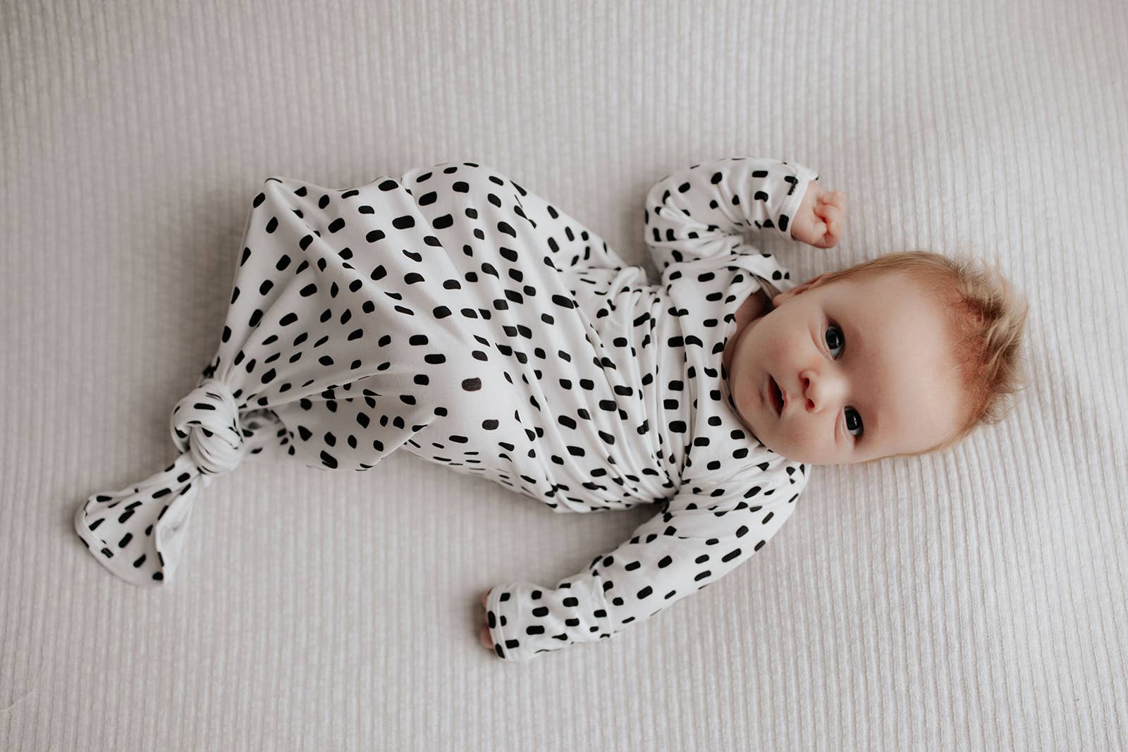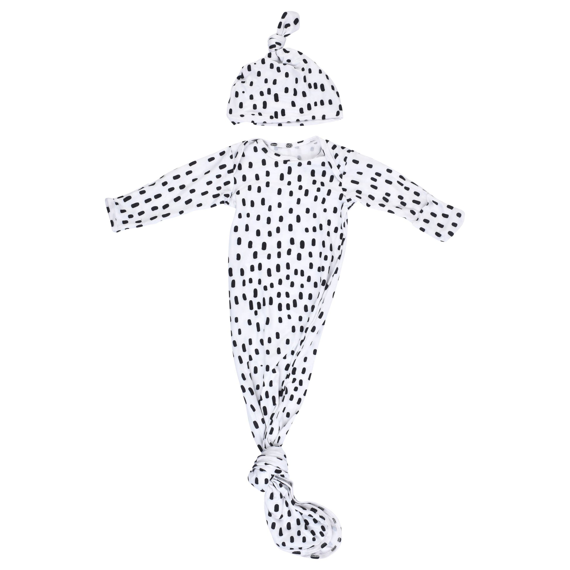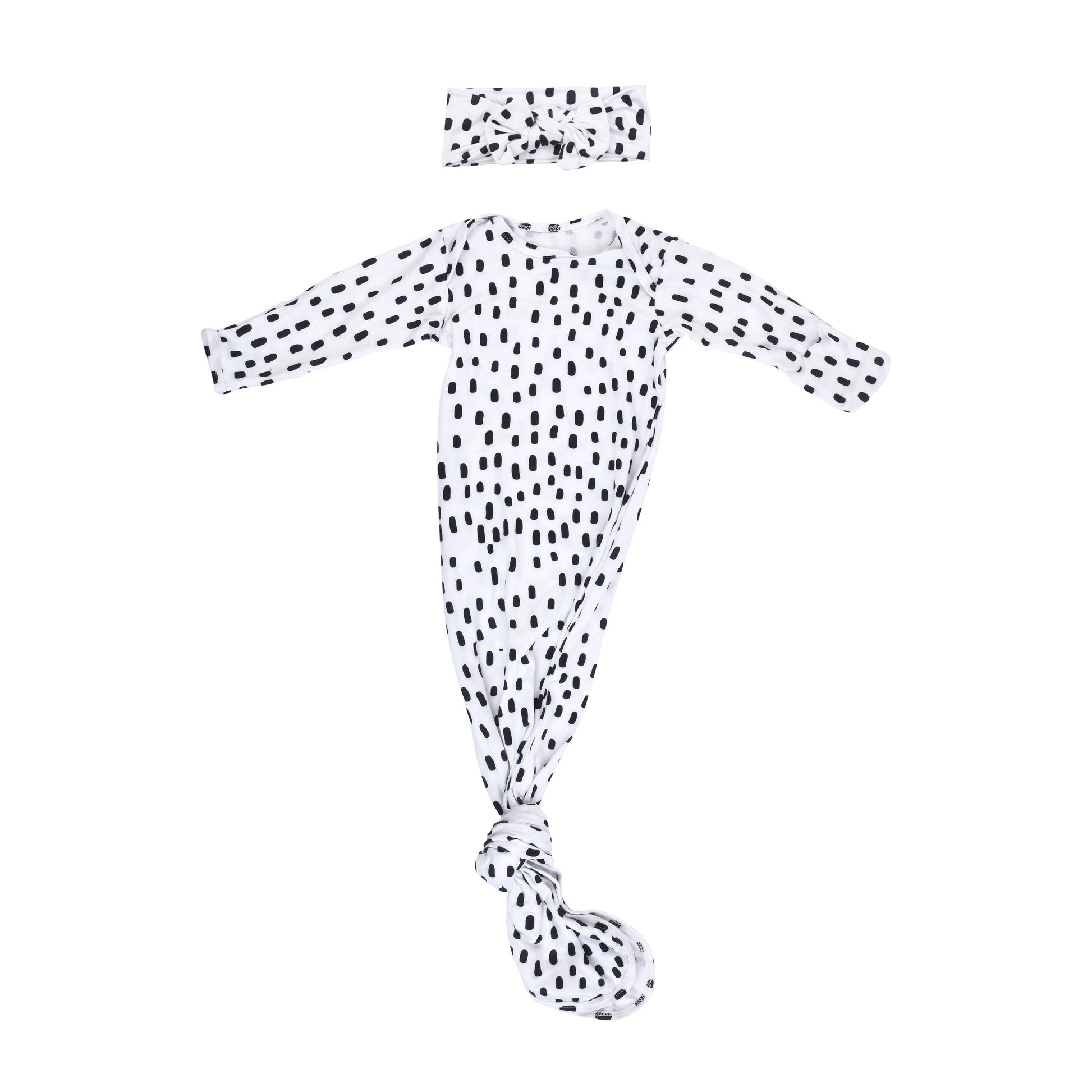 Black & White Poka Dot Knotted Infant Gown: Gown & Bow