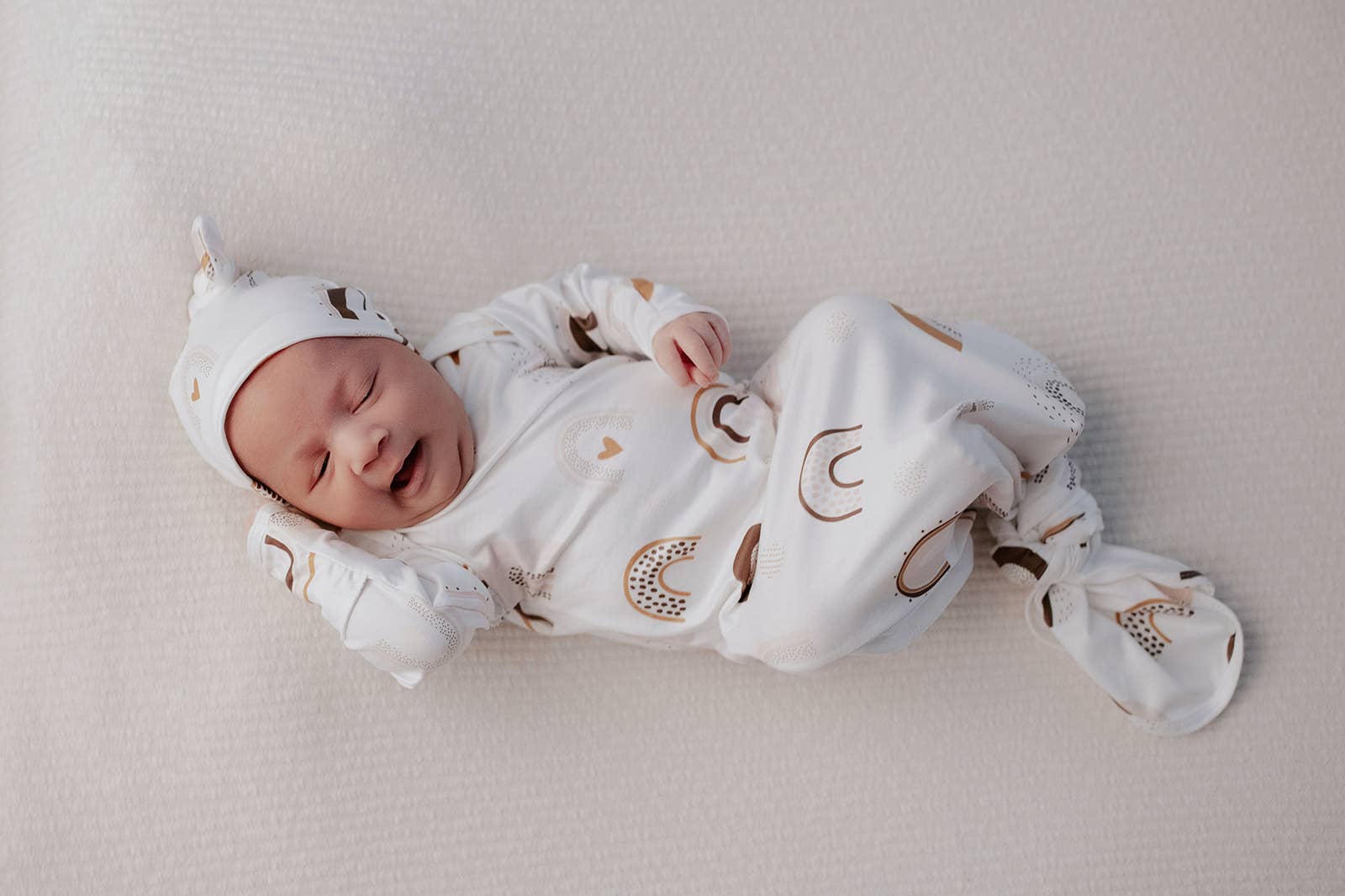 These baby gowns are so soft you will never want your baby in anything else. Fabric is designed to be soft, comfortable, and stretchy. The tie bottom allows for an easy night-time diaper change. The pull-down tabs on the shoulder make it easy to dress and change. Newborn-3 month fits approx 5lbs-15lbs.