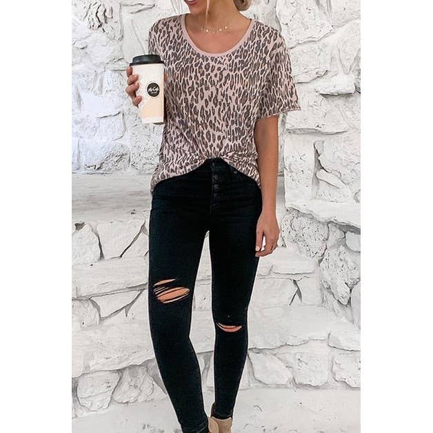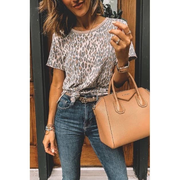 Design: Casual,Round Neck, Leopard Printed, Short Sleeve