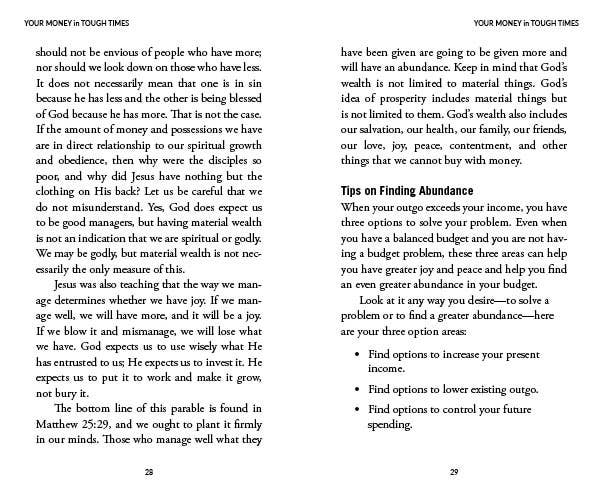 Your Money in Tough Times is a relevant resource—based on spiritual principles—to help you thrive.